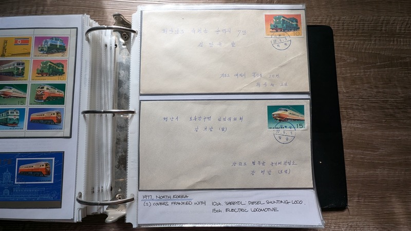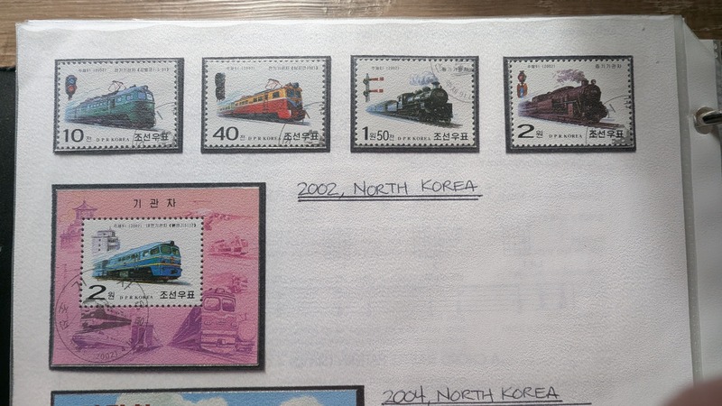 One part of the collection focuses on stamps from North Korea, specifically a series featuring the DPRK trains.