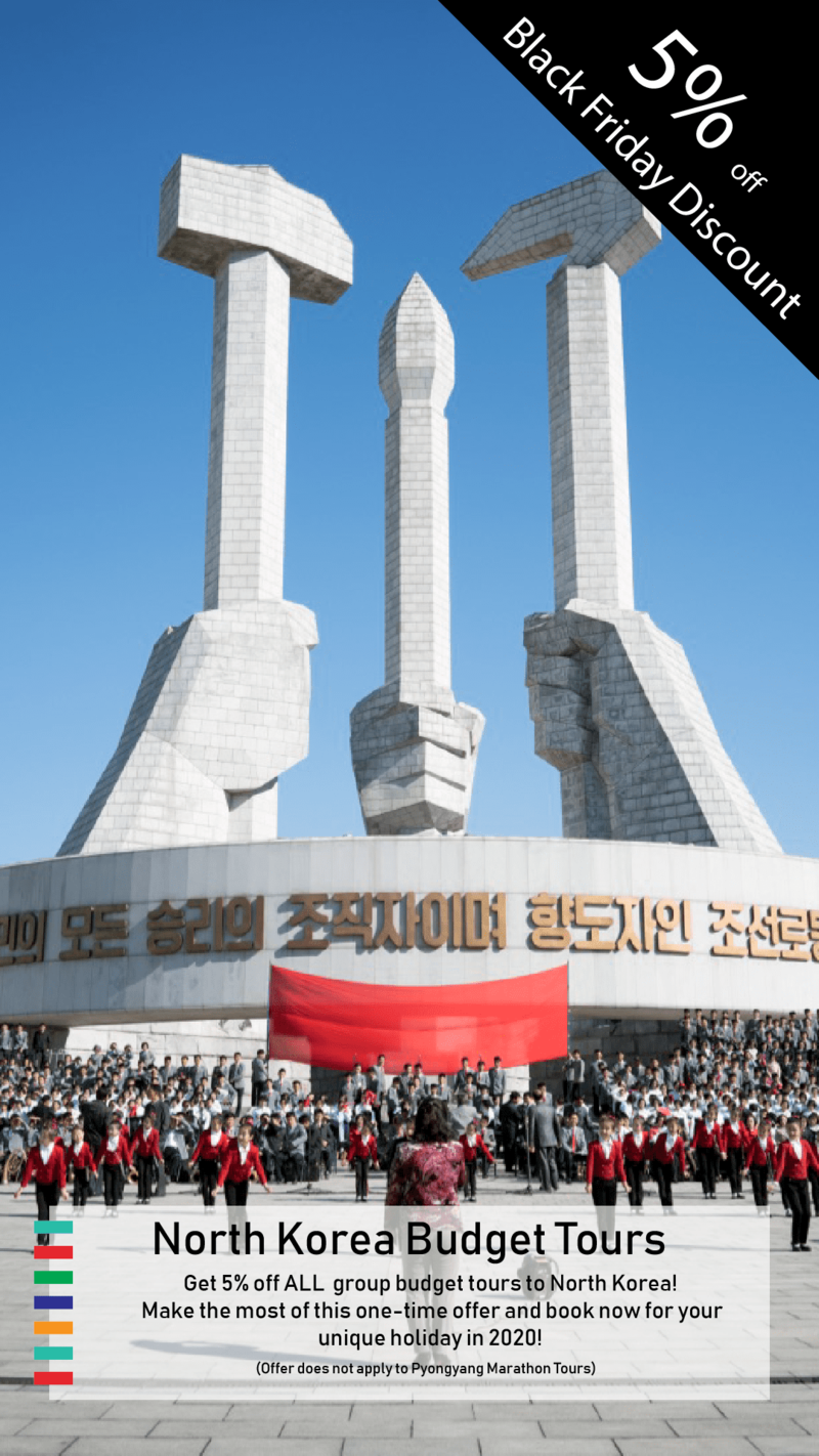 For all of our budget tours, we are offering a 5% discount. This is a massive discount on the already heavily discount budget tours - making North Korea travel available to everyone.