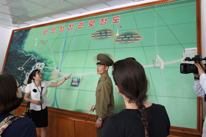 The briefing is conducted by one of the officers of the Korean People's Army and translated by our guide.
