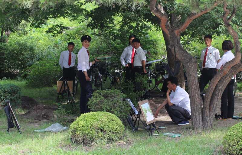 The smile of Kaesong. Art students at Sonjuk Bridge.